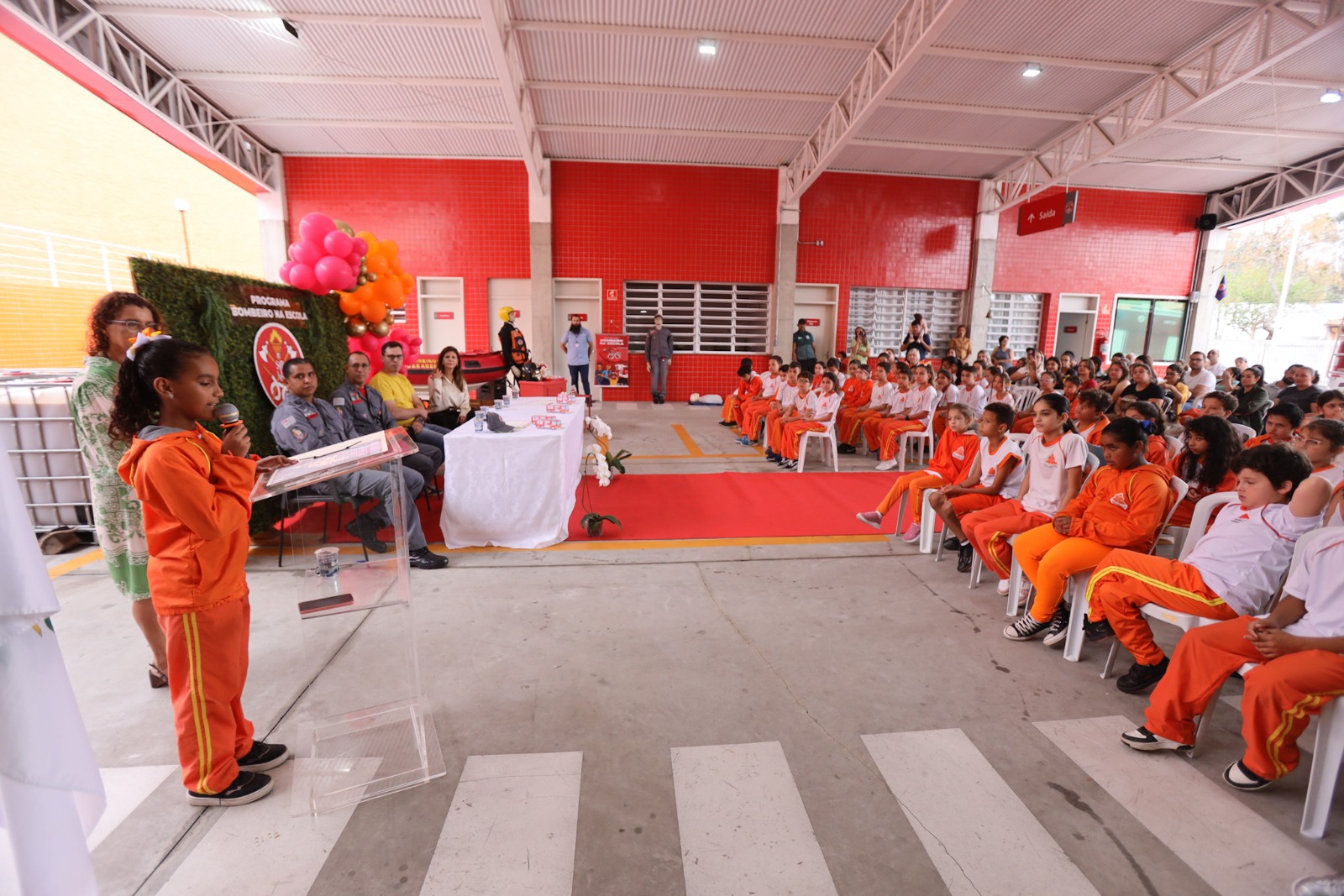Todas as turmas de alunos do 4º ano da Rede Municipal de Ensino participam da programação, que vem sendo realizada desde agosto. Nesta quinta-feira (2) mais uma edição do evento de conclusão foi realizado, das 9h30 às 11h30 e das 14h30 às 16h30, com a entrega de certificados, presença de autoridades municipais, participação da viatura de combate a incêndio e a animação do mascote Faísca, o cachorro símbolo dos Bombeiros.