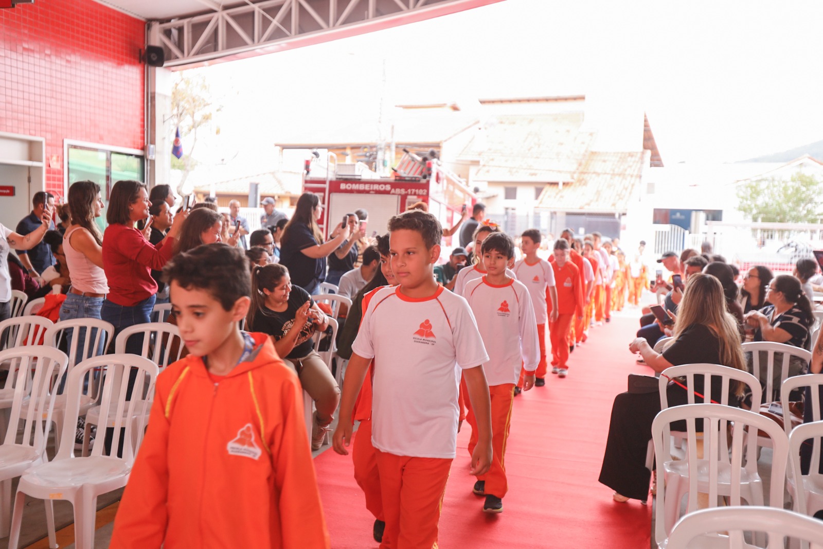 Cerimônias acontecem na sede do Corpo de Bombeiros com participação de autoridades e animação do mascote Faísca