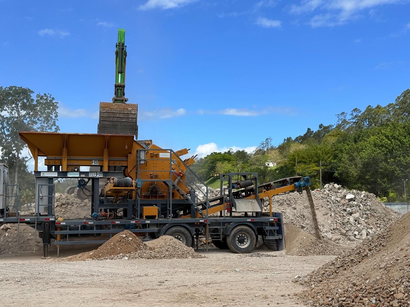Na área ambiental, foi realizada a limpeza preventiva do Ribeirão Nogueira e a ação de transformação de entulho de demolição em cascalho com a máquina do Condemat+, iniciativa direcionada à melhoria das práticas de manejo de resíduos e reaproveitamento de materiais, contribuindo para processos mais sustentáveis no município.