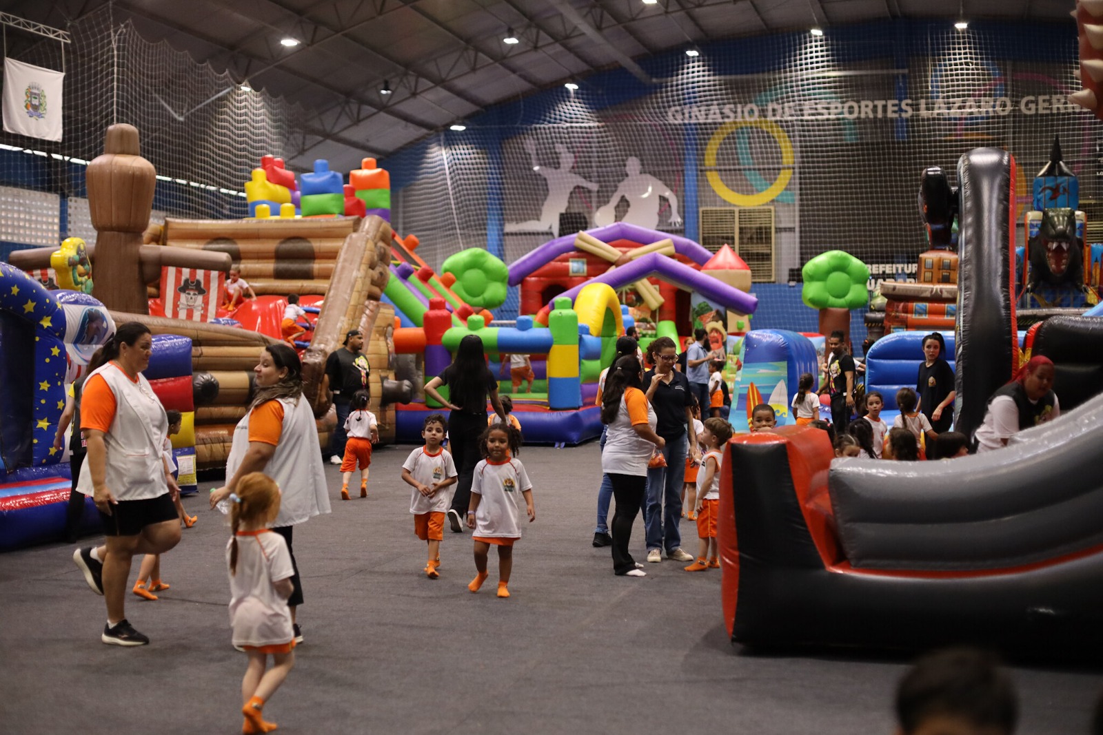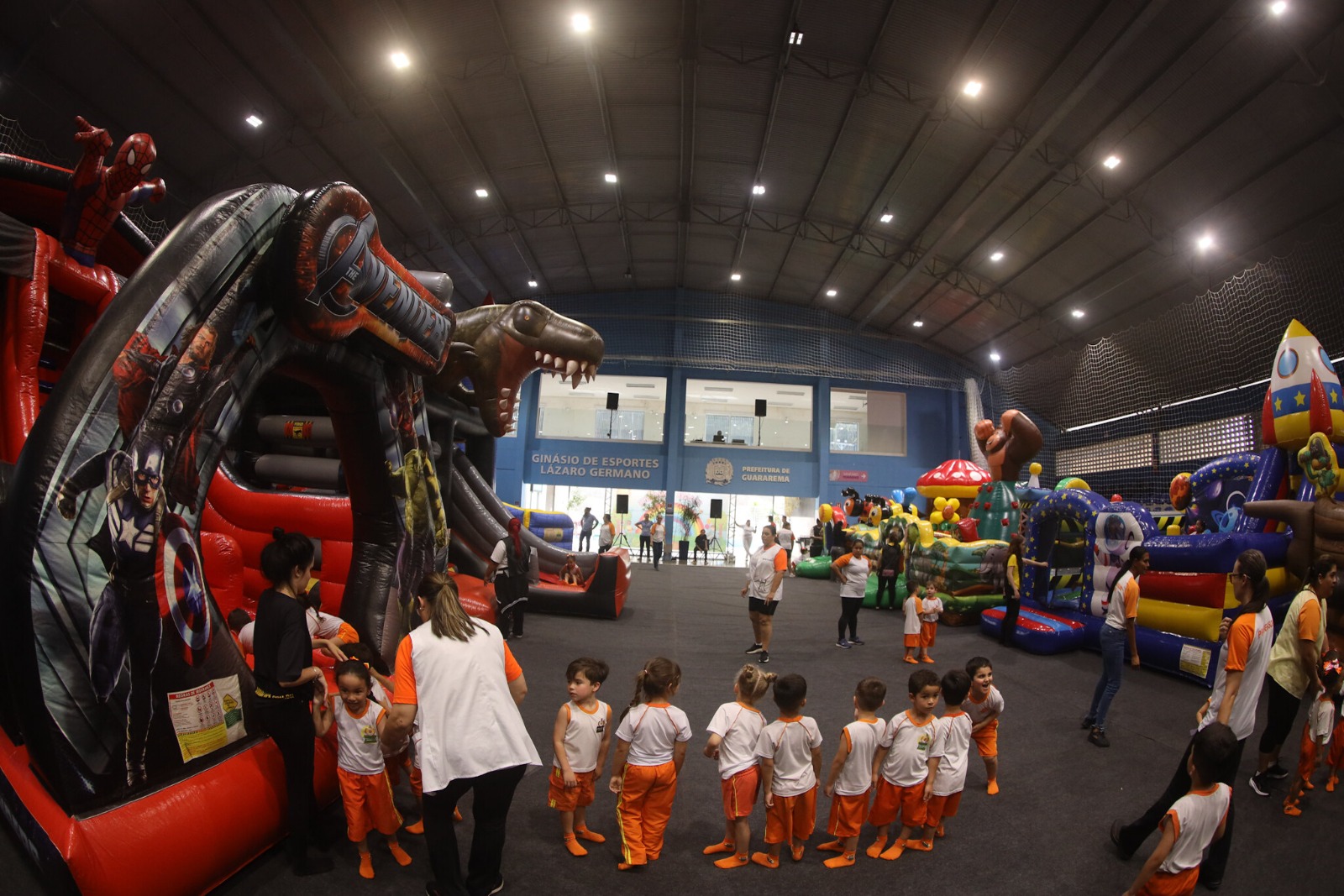Em setembro, além de receber partidas de futsal, vôlei e outras modalidades esportivas, como ginástica rítmica e artes marciais, o Ginásio Municipal Lázaro Germano, no bairro Ipiranga, em Guararema, também recebe as crianças da Rede Municipal de Ensino para dias de muita diversão. É a “Semana Brincante”, que celebra o aniversário de 126 anos da cidade levando os alunos para atividades de lazer com brinquedos infláveis.